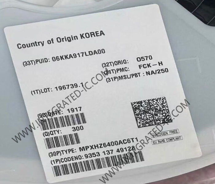 | বিশেষভাবে তুলে ধরা: | MPXHZ6400AC6T1 pressure sensor IC,absolute pressure sensor 20-400KPa,integrated pressure sensor IC |